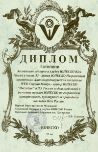 За создание и развитие программных продуктов, за большой вклад в развитие иделов ЮНЕСКО, по сохранению исторического, культурного и природного наследия Юга России.