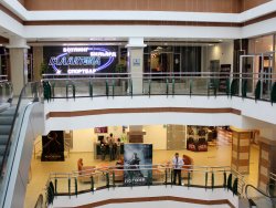 Кинотеатр на два зала, формат 3D, каждый зал оформлен в особой цветовой гамме.