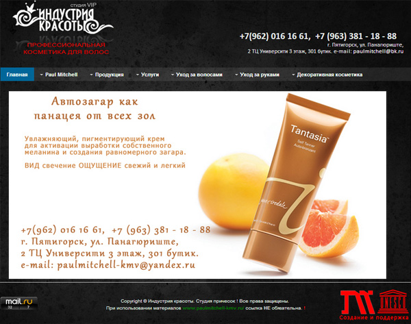 Web-студия - «Машук.Ру» выполнила модернизацию сайта компании Индустрия красоты