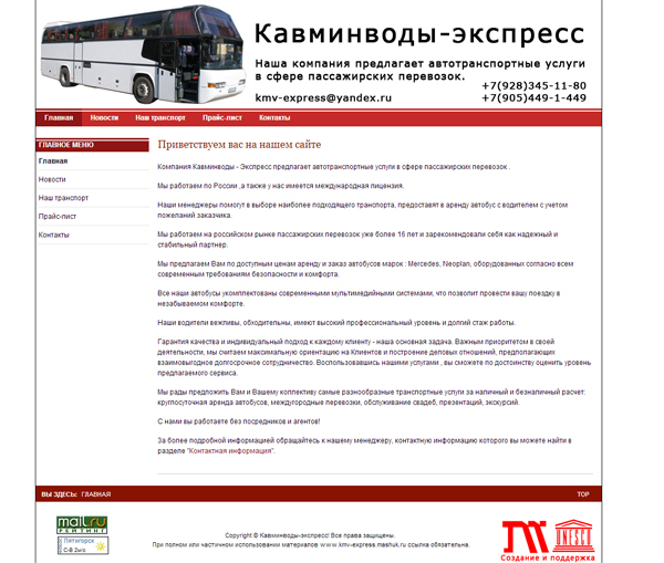Запущен мини-сайт для фирмы "Кавминводы - Экспресс".