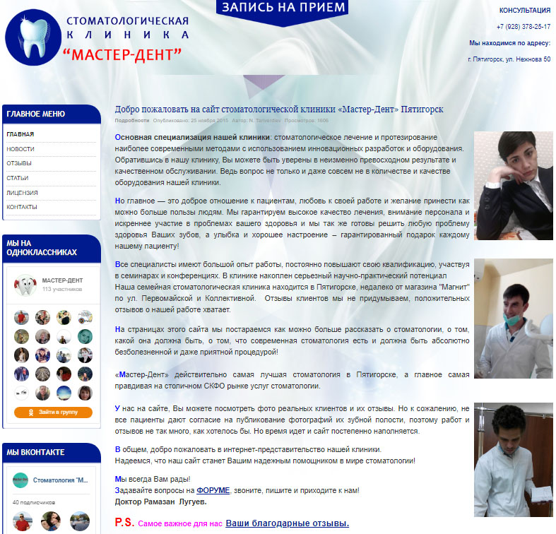 «Машук.Ру» выполнила модернизацию сайта стоматологии «Мастер-Дент» - г. Пятигорск.