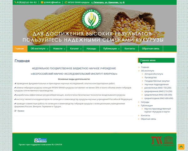 Мы запустили обновленный сайт института : «ФГБНУ ВНИИ КУКУРУЗЫ»