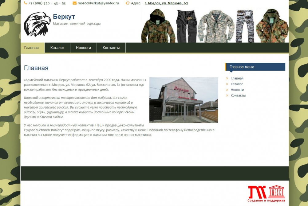 Web студия Машук.ру разработала сайт для Армейского магазина "Беркут" г. Моздок