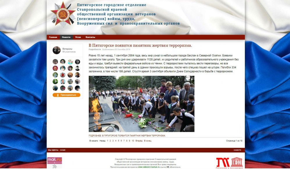 Ссылка на сайт: www.veteranipyatigorska.ru
