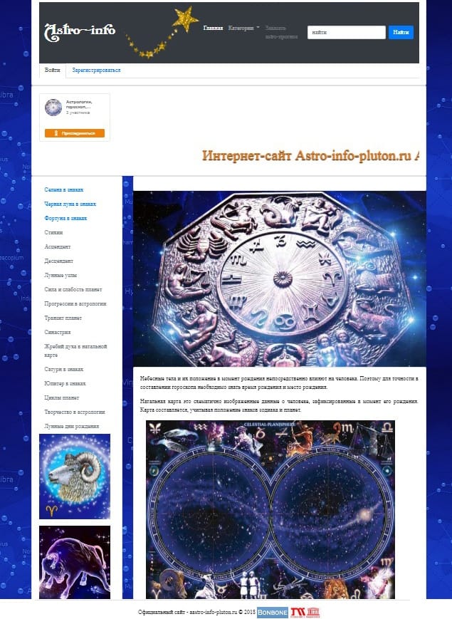 Web-студия "Машук.Ру" Разработал информационный блог - Натальная астрология (натальные карты)