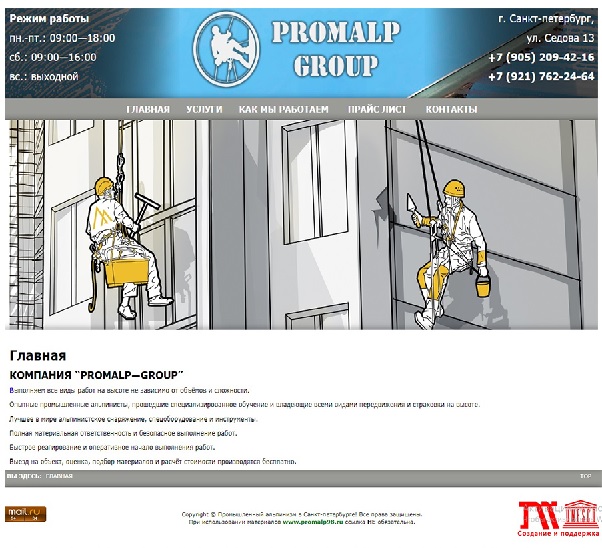 Совсем недавно запустился новый сайт для компании, оказывающей услуги промышленного альпинизма в Санкт Петербурге и Ленинградской области.Промышленный альпинизм — современная технология производства работ по обслуживанию жилых и производственных зданий и сооружений.