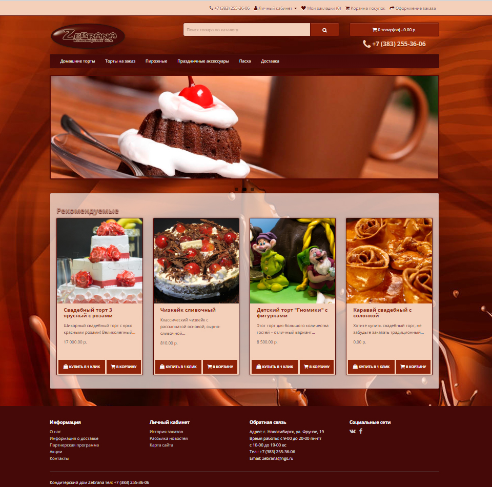 Разработан Интернет- магазин для Кондитерского дома «Zebrana» г. Новосибирск