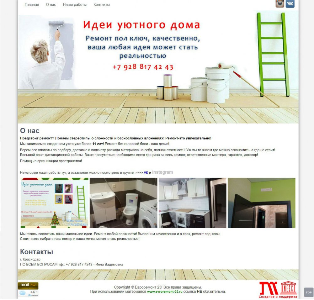 Также, наша cпециалисты занимается продвижением и наполнением этого сайта. Команада оказывают услуги ремонта и созданием уюта уже более 11 лет!
