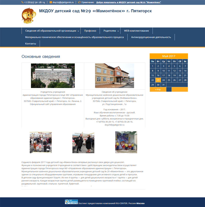 Компания «Машук. Ру» разработала и запустила сайт для МКДОУ детского сада № 29 «Мамонтёнок»