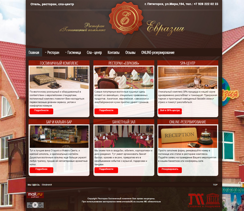 Компания «Машук.Ру» выполнила модернизацию сайта для Ресторанно Гостиничного комплекса Евразия