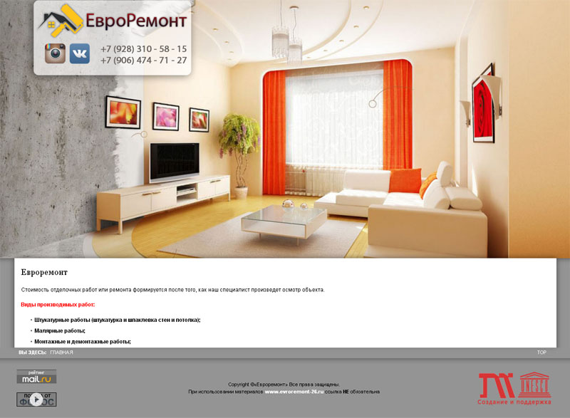 Нами разработана веб страничка для «Евроремонт»-г. Лермонтов.