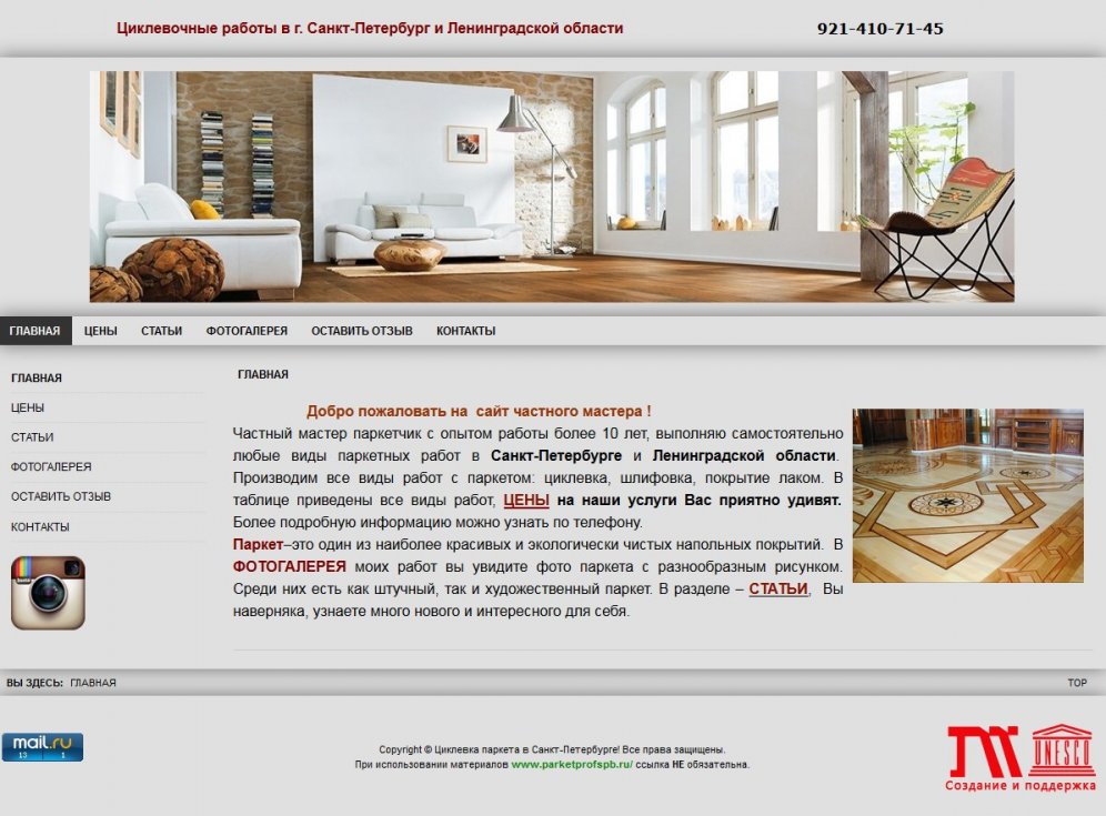 Компания «Машук. Ру» разработала и запустила сайт частного мастера по циклевке паркета.