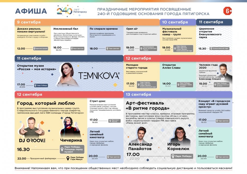 Администрация Пятигорска убедительно просит всех гостей праздника позаботиться о себе и своих близких и соблюдать необходимые меры предосторожности.