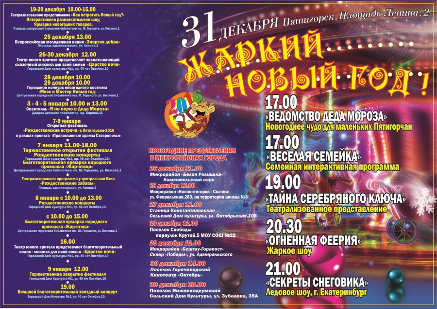 Афиша новогодних мероприятий в Пятигорске!