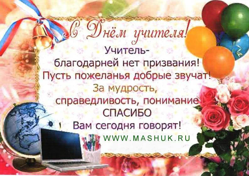 Примите низкий поклон за неустанный труд и терпение, за вашу великую миссию, служащую источником жизни и добра. Пусть вас всегда окружает повседневная забота близких, дети радуют успехами, внуки дарят тепло и внимание. Любви, нежности, душевного покоя и мира!»