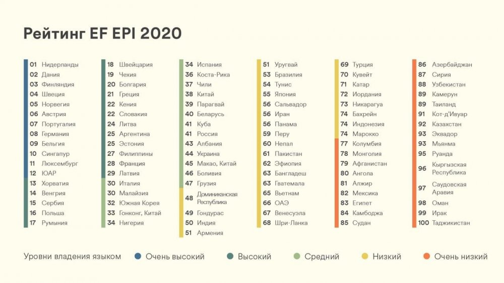 Страна вошла в группу со «средним уровнем» владения языком, а год назад была в группе с «низким»
