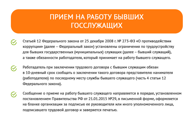 Ограничения при трудоустройстве бывших государственных и муниципальных служащих.