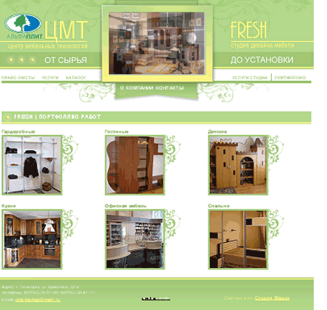 На сайте представлена разнообразная продукция фабрики в том числе мебель для кухни, гостиной, спальни, детская мебель, шкафы.