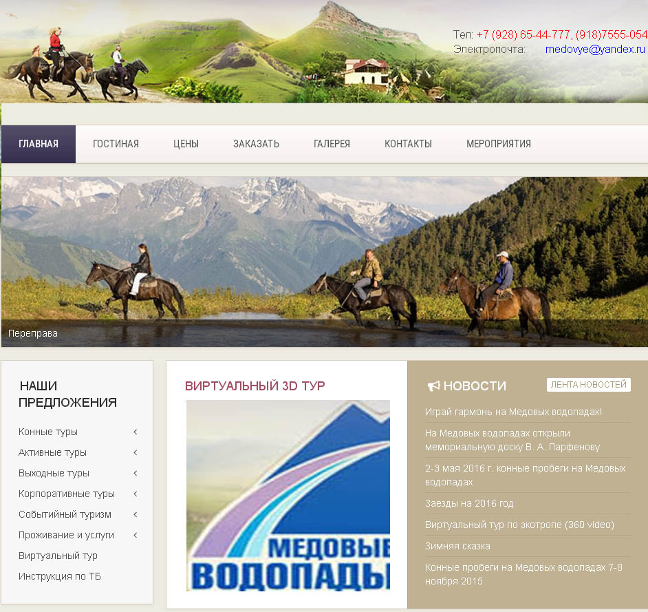 Сайт -"Медовые водопады" г. Кисловодск
