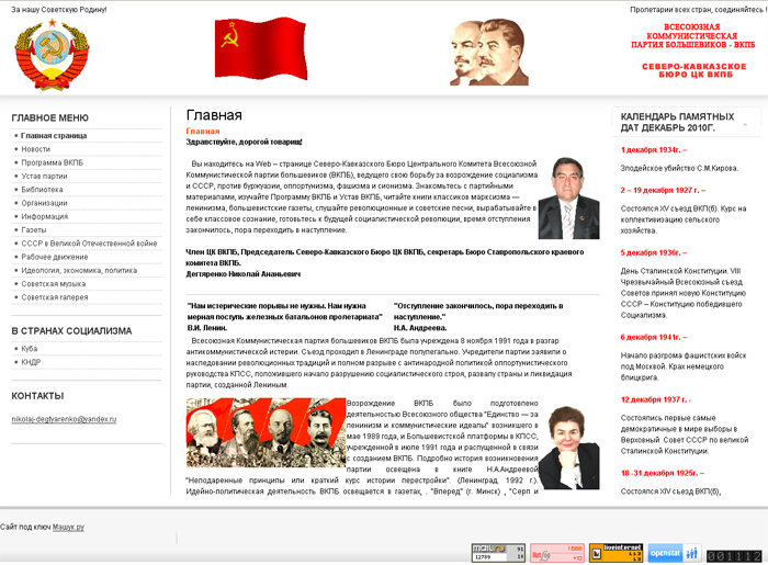 Портал Северо-Кавказского Бюро Центрального Комитета Всесоюзной Коммунистической Партии Большевиков (ВКПБ) Ссылка на сайт:www.vkpb-skb.ru