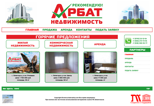 Web-студия «Машук.Ру» выполнила создание сайта Агентства недвижимости «Арбат»