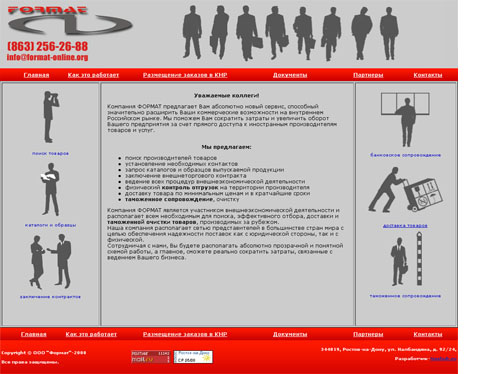 Компания ФОРМАТ предлагает Вам абсолютно новый сервис, способный значительно расширить Ваши коммерческие возможности на внутреннем Российском рынке. Мы поможем Вам сократить затраты и увеличить оборот Вашего предприятия за счет прямого доступа к иностранным производителям товаров и услуг.