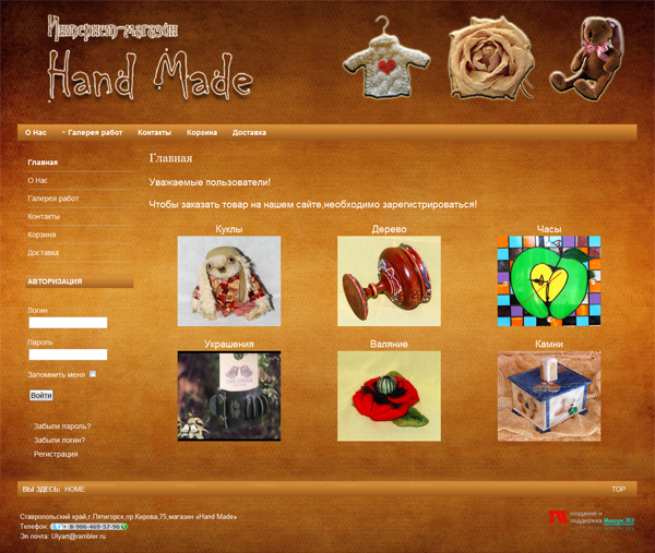 Веб-студия «Машук.Ру» разработала интернет- магазин авторских работ, на котором можно найти много интересных вещиц на подарок или просто для себя.