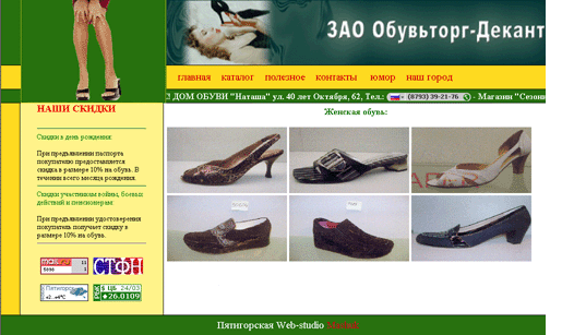 Сайт Торговой фирмы ЗАО"Обувьторг-Декант"