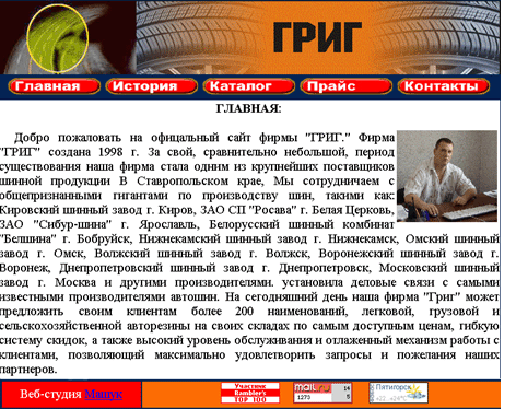 Фирма "ГРИГ" один из крупнейших поставщиков шинной продукции В Ставропольском крае. фирма "Григ" может предложить своим клиентам более 200 наименований, легковой, грузовой и сельскохозяйственной авторезины на своих складах по самым доступным ценам.