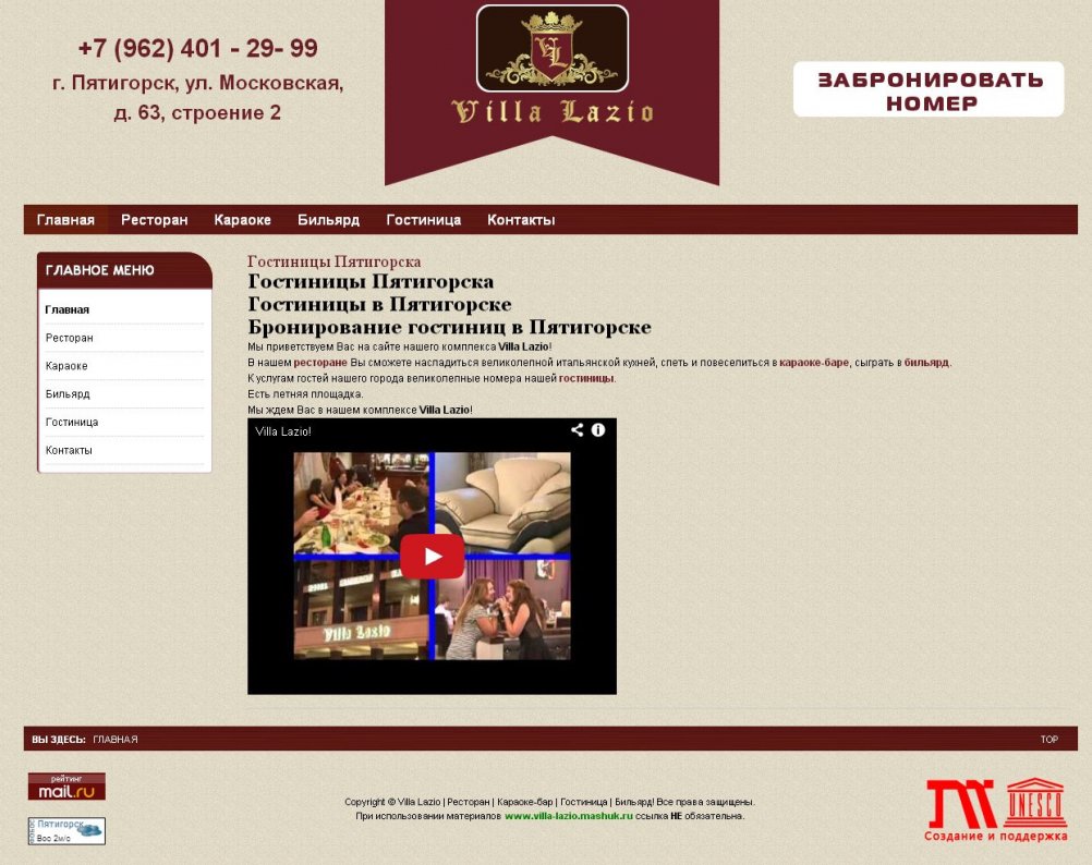 Создание сайта ресторана «Villa Lazio» Пятигорск подошло к логическому завершения.