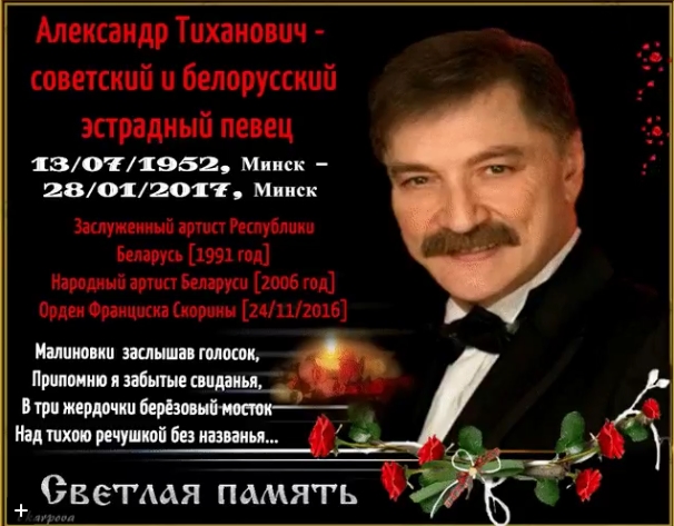 В последний год Тиханович тяжело болел. Тиханович родился 13 июля 1952, был советским и белорусским эстрадным певцом, вместе со своей супругой Ядвигой Поплавской участвовал в ансамбле «Верасы»!