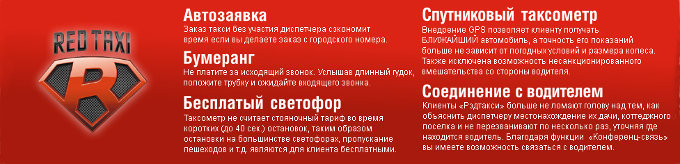 «RedTaxi» удобно вызывать — опция «Бумеранг» - услышав длинный гудок положите трубку — мы сами перезвоним Вам!
